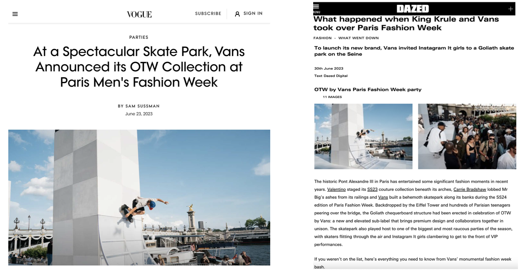To premiere Vans’ new pinnacle label, OTW by Vans, we created a multi-day brand experience on the banks of the Seine during Paris Fashion Week. Blending skateboarding, art, product, the experience featured a skateable architectural installation designed in partnership with PLAYLAB inc, a live skate exhibition featuring Vans athletes, and musical performances by King Krule and Onyx Collective.